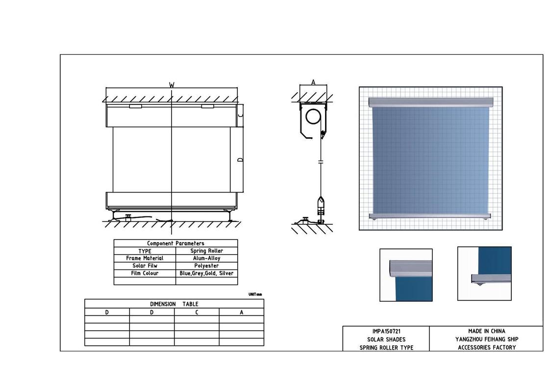 For Marine Sunblinds, FEI HANG Solar Shades Spring Roller Anti-glare sunscreen blinds are an ideal choice due to their durable construction and anti-glare sunscreen properties. The blinds are available in various models including FH-001, FH-002, FH-003, and FH-004, ensuring there is a suitable option for every marine setting.